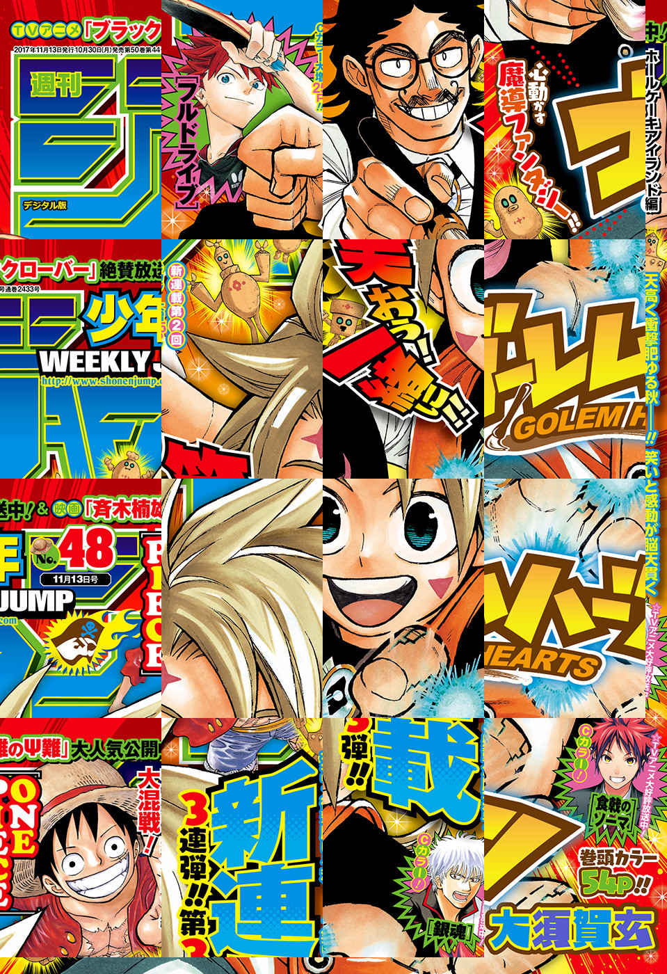 【記事ページ】も毎号収録!/巻頭カラーは、天高く衝撃肥ゆる秋—!!新連載3連弾!!第3弾!!「心」打つ魔導ファンタジー!!54ページ!!『ゴーレムハーツ』/熱血王道卓球新連載第2話!!センターカラー25ページ!!『フルドライブ』/テレビアニメ第3期放送中!2号連続つながるセンターカラー!!『食戟のソーマ』/第5回キャラクター人気投票結果発表センターカラー!!『銀魂』/【電子版限定特典】『ゆらぎ荘の幽奈さん』のフルカラー版! ※デジタル版では、綴じ込み付録・シリアルコードなど一部未収録となっている内容があります。 ※収録されている懸賞などは紙版の企画であり、デジタル版では一部ご応募頂けないものがございます。