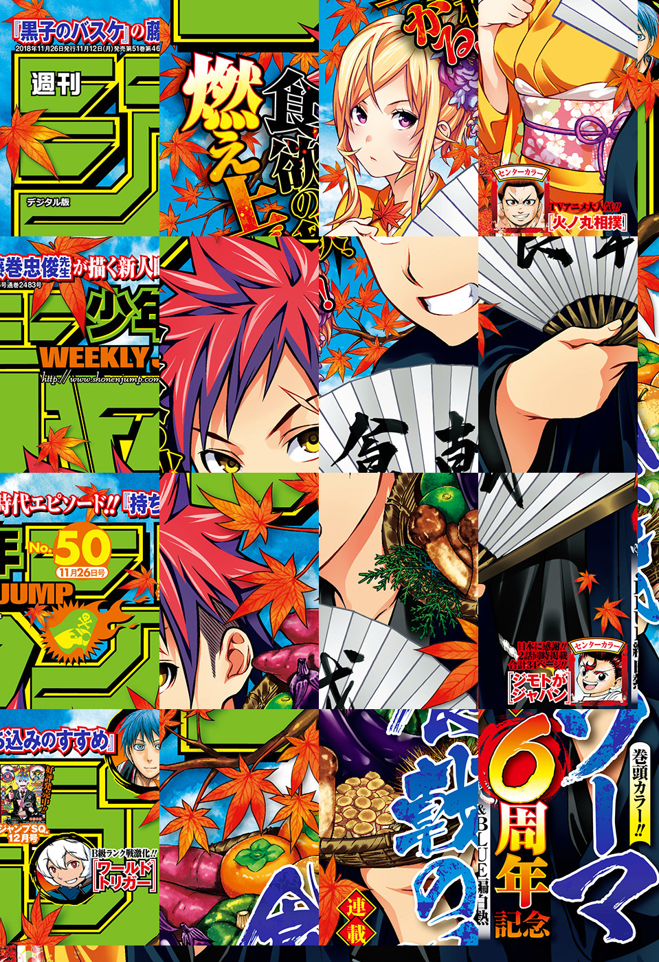 【記事ページ】も毎号収録!/巻頭カラーは、連載6周年記念&"BLUE"編絶好調!!『食戟のソーマ』/アニメ大人気御礼&大相撲編白熱センターカラー!!『火ノ丸相撲』/列島席巻ご当地ギャグ大人気御礼!!2話同時掲載34ページ&センターカラー!『ジモトがジャパン』/【電子版限定特典】『ゆらぎ荘の幽奈さん』のフルカラー版!※デジタル版では、綴じ込み付録・シリアルコードなど一部未収録となっている内容があります。※収録されている懸賞などは紙版の企画であり、デジタル版では一部ご応募頂けないものがございます。