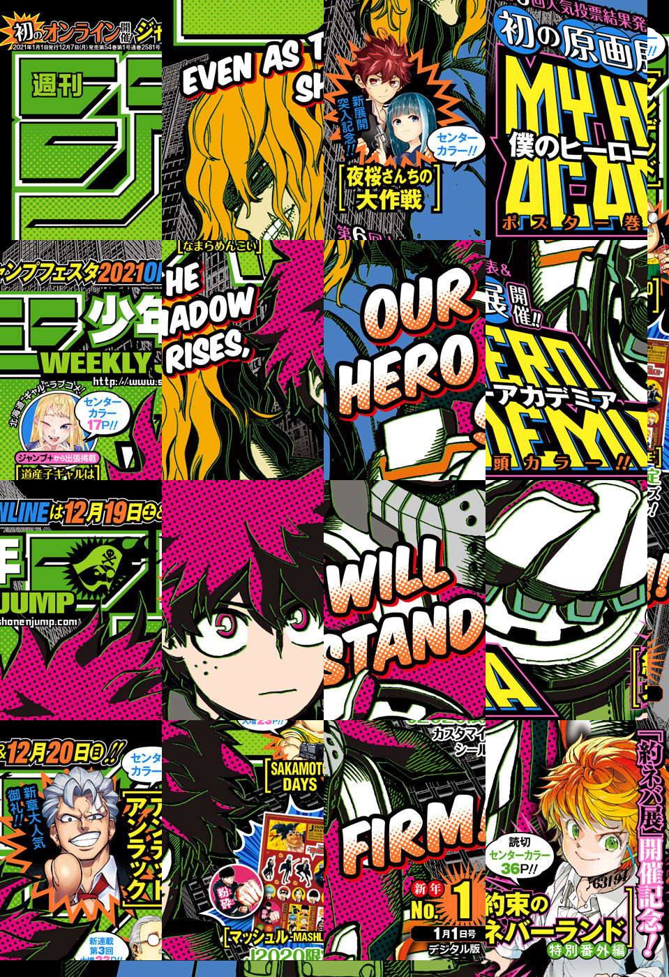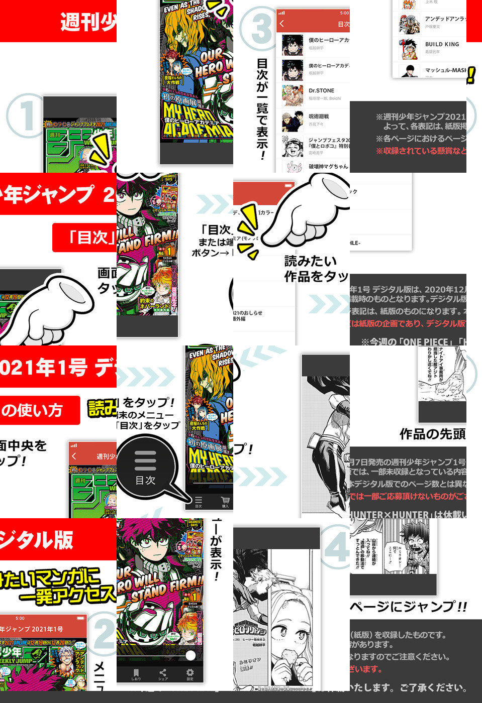 【記事ページ】も毎号収録!/巻頭カラーは、第6回人気投票結果発表&ヒロアカ展開催表紙&ポスター!!『僕のヒーローアカデミア』/物語はついに始まりの時へ——!アンディ過去探訪クライマックスセンターカラー!!『アンデッドアンラック』/「約ネバ展」開催&実写映画公開直前記念!!2号連続特別番外編読切第一弾センターカラー36ページ!!『約束のネバーランド 特別番外編 自由の空を求めて』/ジャンプ+で4600万PV越えの大人気ラブコメ♡特別出張読切センターカラー!『道産子ギャルはなまらめんこい』/新展開突入記念センターカラー!!『夜桜さんちの大作戦』/※デジタル版では、綴じ込み付録・シリアルコードなど一部未収録となっている内容があります。※収録されている懸賞などは紙版の企画であり、デジタル版では一部ご応募頂けないものがございます。