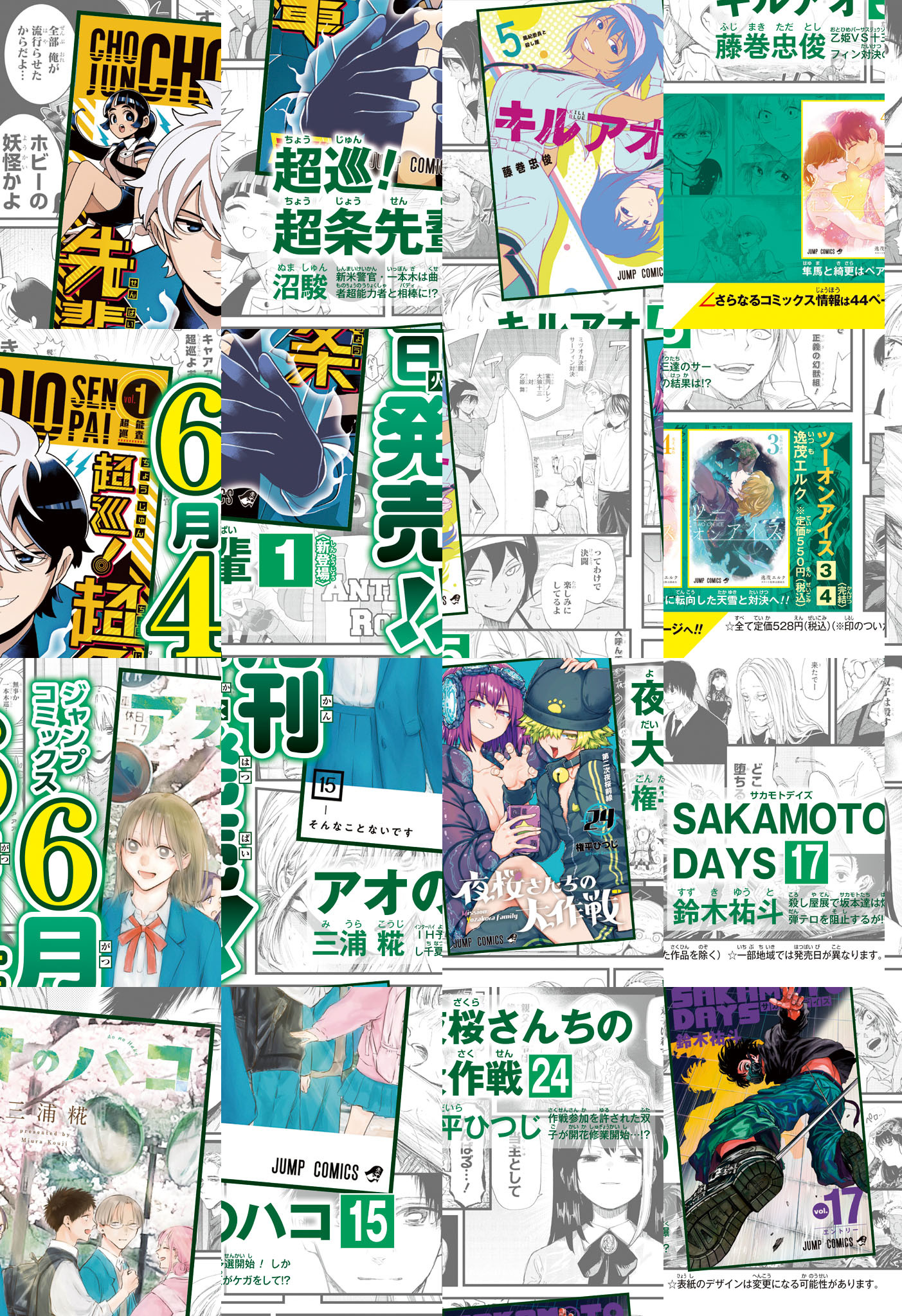 ※「呪術廻戦」は休載となります。【記事ページ】も毎号収録!/非日常殺し屋アクション 大人気御礼巻頭カラー!!『SAKAMOTO DAYS』/珍宿にニューヒーロー見参!!人気超加速大御礼&第1巻発売直前記念2号連続センターカラー第2回!!『超巡!超条先輩』/自由へ向かう欺瞞の旅!かたつむり系護衛バトル読切47ページ!『でんでんナイト』/連載4周年記念ファンアートコンテスト結果発表センターカラー!!『アンデッドアンラック』/※デジタル版では、綴じ込み付録・シリアルコードなど一部未収録となっている内容があります。※収録されている懸賞などは紙版の企画であり、デジタル版では一部ご応募頂けないものがございます。
