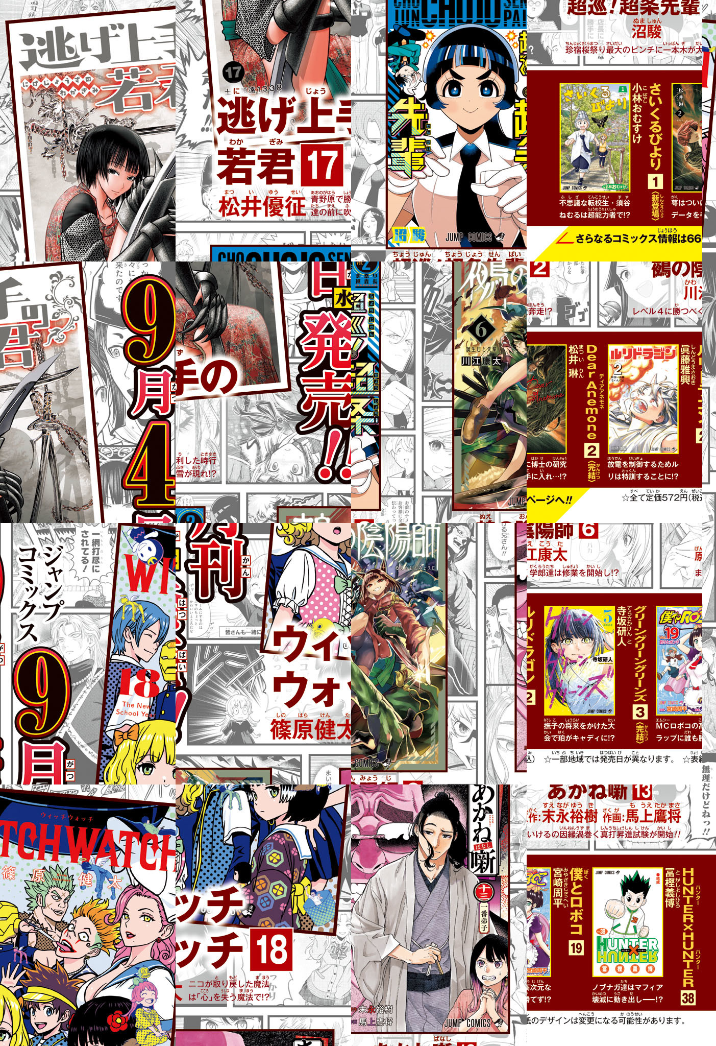 ※「ONE PIECE」は休載となります。【記事ページ】も毎号収録!/チヒロの復讐が加速する!祝連載1周年!新章胎動表紙&巻頭カラー!『カグラバチ』/連載開始直後から人気爆発!!女子高生社長×家事代行ラブコメ大反響御礼センターカラー!!『ひまてん!』/超能力ポリスコメディ絶好超!&第2巻発売直前記念センターカラー!!『超巡!超条先輩』/審査員大絶賛の第107回手塚賞準入選作品!!救世主はゾンビ!?新感覚ダークヒーロー読切センターカラー31ページ!!『ゾンビジョン』/※デジタル版では、綴じ込み付録・シリアルコードなど一部未収録となっている内容があります。※収録されている懸賞などは紙版の企画であり、デジタル版では一部ご応募頂けないものがございます。