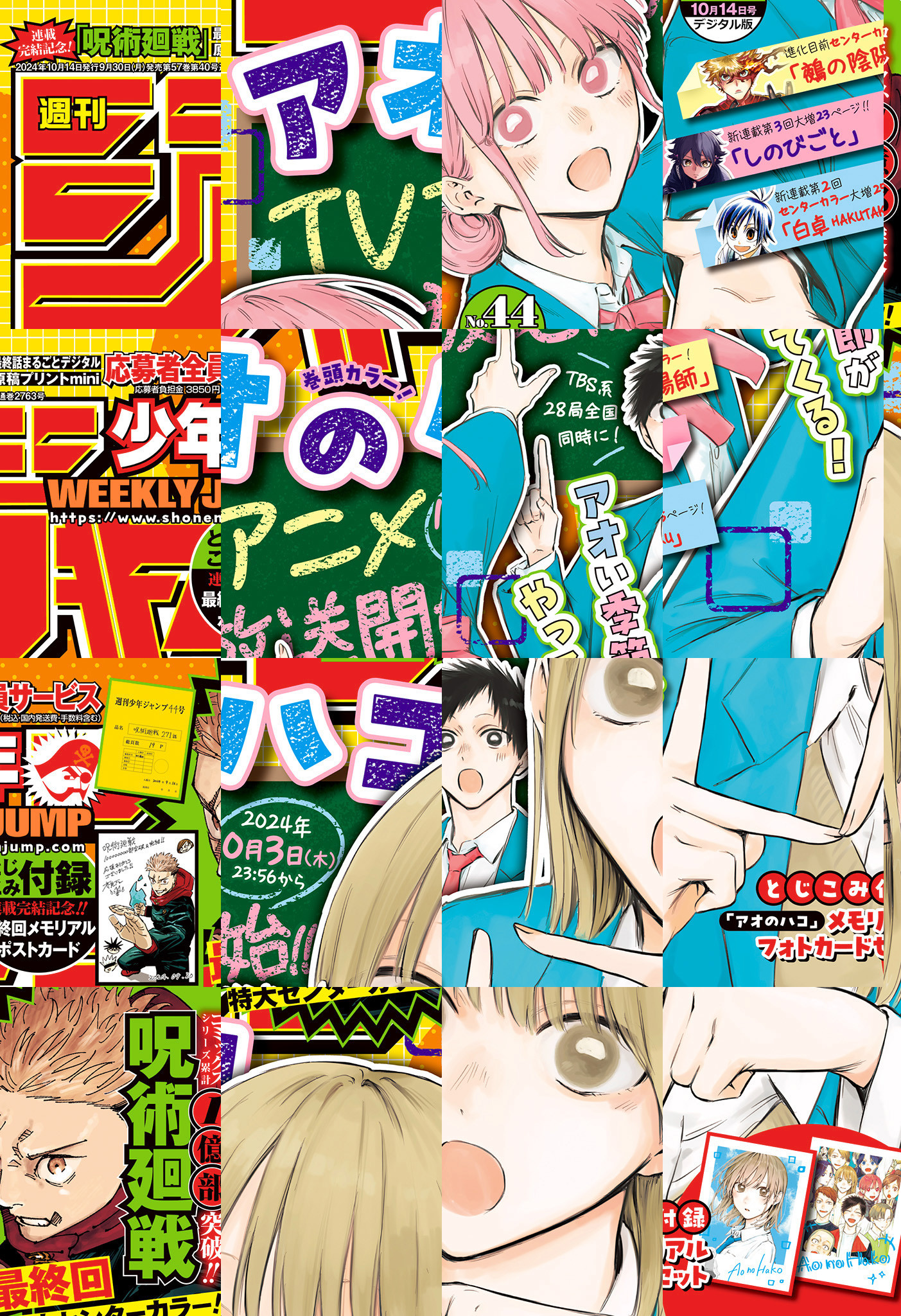 ※「ONE PIECE」は休載となります。【記事ページ】も毎号収録!/10月3日(木)テレビアニメ放送開始!心揺れ動く文化祭、超人気御礼表紙&巻頭カラー!『アオのハコ』/コミックスシリーズ累計1億部突破!&連載超クライマックス!最終回特大センターカラー!!『呪術廻戦』/激変する日々!高校生バディゲーム制作物語、新連載第2回センターカラー大増25ページ!『白卓 HAKUTAKU』/鏖との戦いに備えよ──…進化目前センターカラー!『鵺の陰陽師』/※デジタル版では、綴じ込み付録・シリアルコードなど一部未収録となっている内容があります。※収録されている懸賞などは紙版の企画であり、デジタル版では一部ご応募頂けないものがございます。