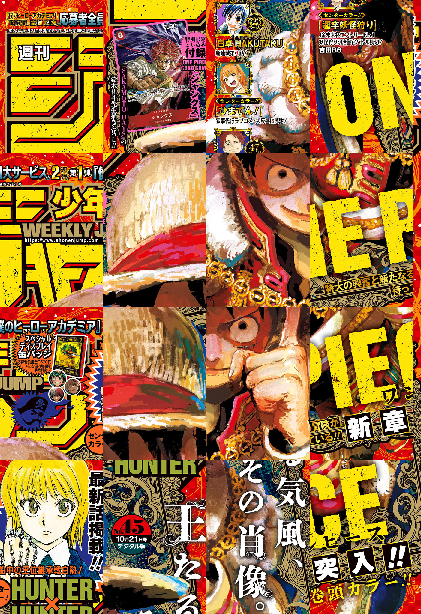 ※「SAKAMOTO DAYS」は休載となります。【記事ページ】も毎号収録!/特大の興奮と新たなる冒険が待っている!!新章突入表紙&巻頭カラー!!『ONE PIECE』/家事代行ラブコメ・大反響に感謝!!妃眞理のおうちモードセンターカラー!!『ひまてん!』/J金未来杯エントリーNo.1妖怪狩り明治警官バトル読切センターカラー47ページ!!『邏卒妖怪狩り』/船中の王位継承戦白熱!悪意増し蠢きだす権謀術数センターカラー!『HUNTER×HUNTER』/※デジタル版では、綴じ込み付録・シリアルコードなど一部未収録となっている内容があります。※収録されている懸賞などは紙版の企画であり、デジタル版では一部ご応募頂けないものがございます。