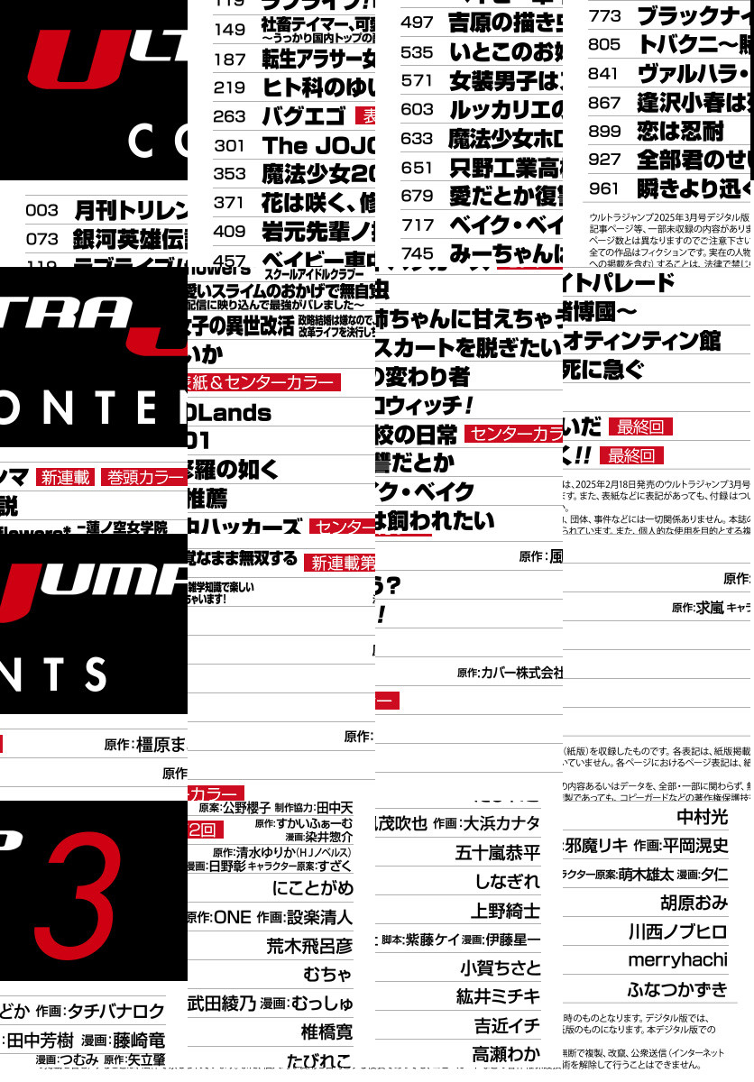 「ウルトラジャンプ 2025年3月号」、紙と同時に配信!/【表紙&センターカラー】『バグエゴ』(原作:ONE 作画:設楽清人)/【新連載&巻頭カラー】『月刊トリレンマ』(原作:橿原まどか 作画:タチバナロク)/【センターカラー】『ベイビー車中ハッカーズ』(たびれこ)、『只野工業高校の日常』(小賀ちさと)/【最終回】『全部君のせいだ』(merryhachi)、『瞬きより迅く!!』(ふなつかずき)/ほか、22作品を掲載!