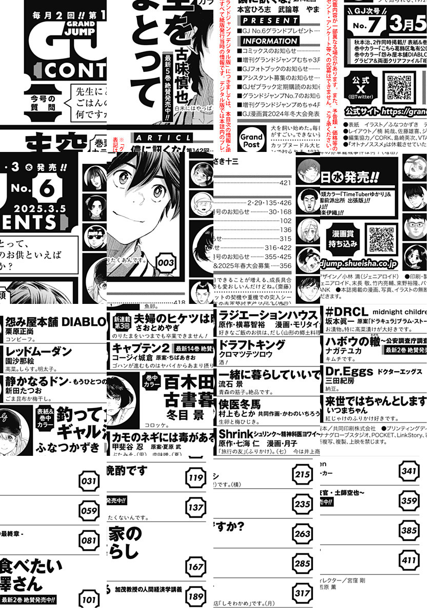 「グランドジャンプ 2025 No.6」、紙と同時に配信!/【表紙&巻中カラー】『釣って食べたいギャル澤さん』(ふなつかずき)/【巻頭カラー】『空をまとって』(古味慎也)/【巻中カラー】『百木田家の古書暮らし』(冬目景)/ほか、17作品を掲載!