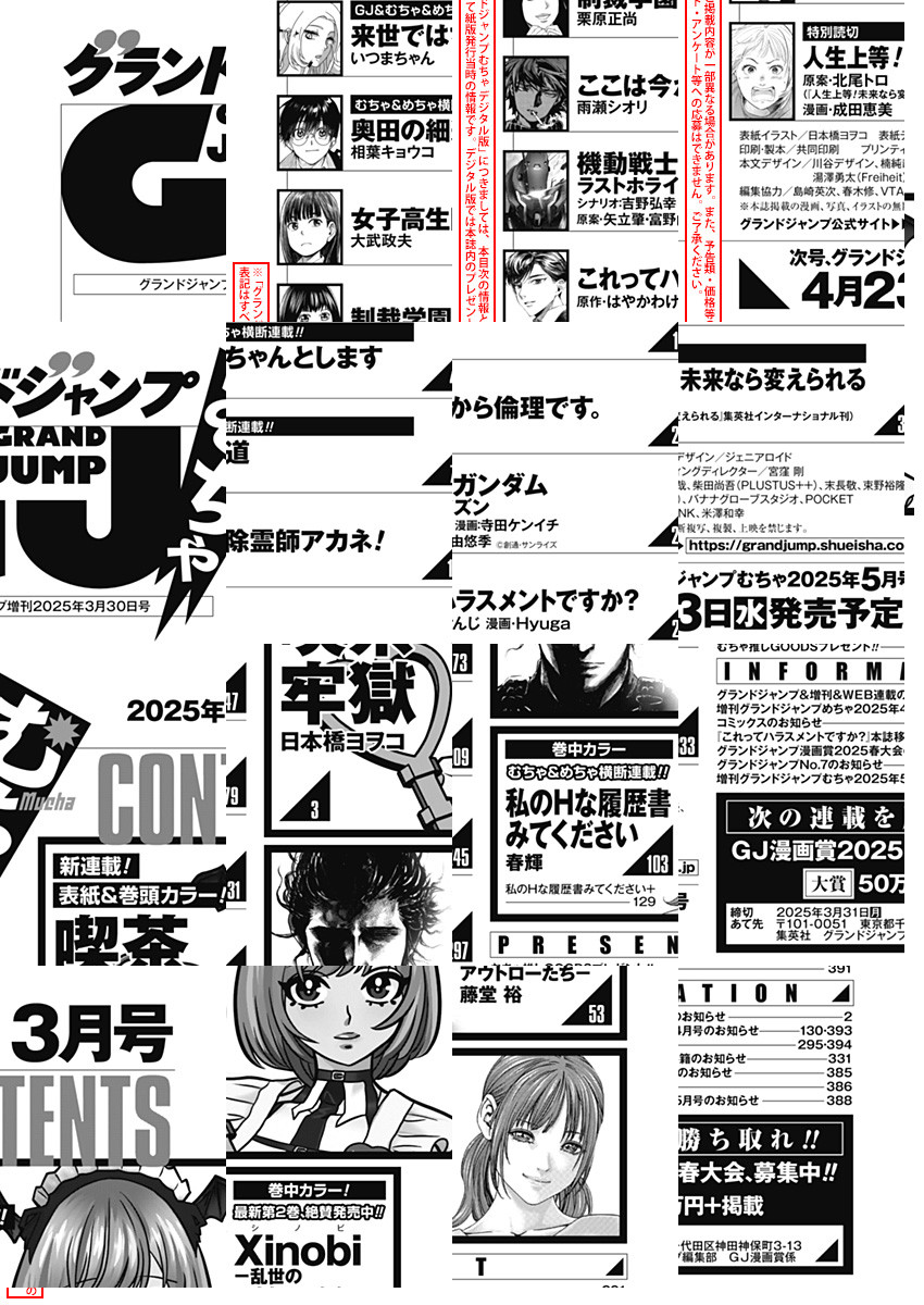 「GJ」増刊「グランドジャンプ むちゃ」電子版、2025年3月号、紙と同時に配信!/【新連載&表紙&巻頭カラー】『喫茶牢獄』(日本橋ヨヲコ)/【巻中カラー】『Xinobi-乱世のアウトローたち-』(藤堂裕)、『私のHな履歴書みてください』(春輝)/【特別読切】『人生上等!未来なら変えられる』(原案・北尾トロ(『人生上等!未来なら変えられる』集英社インターナショナル刊) 漫画・成田恵美)/ほか、7作品を収録!