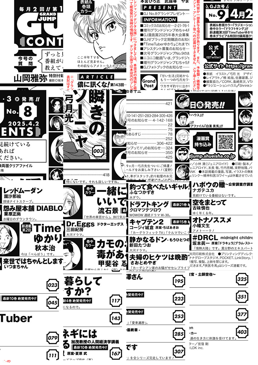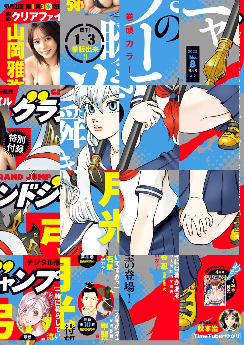 「グランドジャンプ 2025 No.8」、紙と同時に配信!/【表紙&巻頭カラー】『瞬きのソーニャ』(弓月光)/【巻中カラー】『一緒に暮らしていいですか?』(流石景)、『カモのネギには毒がある 加茂教授の人間経済学講義』(甲斐谷忍 原案・夏原武)/【特別付録】両面クリアファイル 山岡雅弥(デジタル版はグラビアとして巻末に収録)/ほか、16作品を掲載!