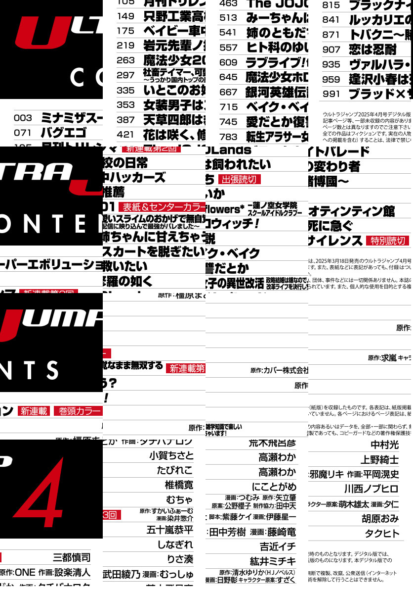 「ウルトラジャンプ 2025年4月号」、紙と同時に配信!/【表紙&センターカラー】『魔法少女201』(むちゃ)/【新連載&巻頭カラー】『ミナミザスーパーエボリューション』(三都慎司)/【出張読切】『姉のともだち』(高瀬わか)/【特別読切】『ブラッド×サイレンス』(タクヒト)/ほか、25作品を掲載!