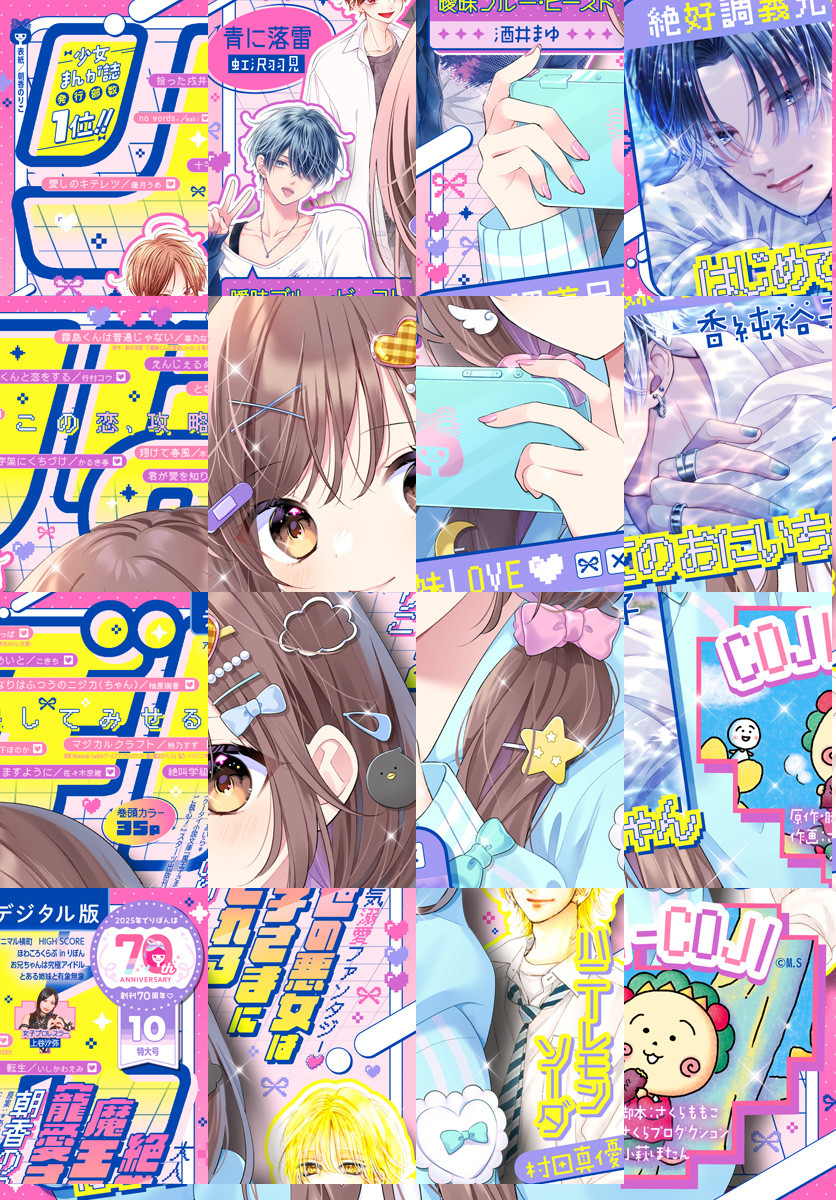 ★圧倒的人気の溺愛ファンタジー! 朝香のりこ 原案:*あいら*「絶世の悪女は魔王子さまに寵愛される」 ★累計1500万部突破のしゅわきゅん青春ラブ! 村田真優「ハニーレモンソーダ」 ★大人気! 禁断の義兄妹ラブれんさい 香純裕子「はじめてのおにいちゃん」 ★伝説のナンセンスコメディが読みきりで登場! 原作・脚本:さくらももこ 作画:さくらプロダクション 小萩ぼたん「COJI-COJI」 ★憧れ度120%の青春ラブストーリー! 虹沢羽見「青に落雷」 ★集英社みらい文庫の超人気作をコミカライズ! 森乃なっぱ 原作:麻井深雪「霧島くんは普通じゃない」 ★恐怖に凍てつく最恐ホラー いしかわえみ「絶叫学級 転生」 ★推し活ドリームラブコメ! 酒井まゆ「曖昧ブルー・ビースト」 ★人気上昇中♪ 天使界隈学園すとーりー こきち「えんじぇるめいと」 ★ときめきの運動部ラブストーリー! 木下ほのか「翔けて春風」 ★マジメ女子VSチャラ男子の攻防戦! 佐々木奈緒「君が愛を知りますように」