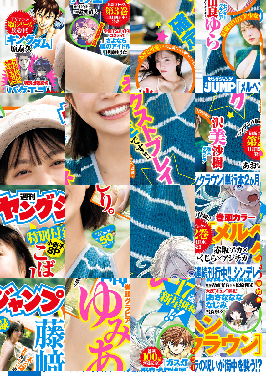 ※デジタル版ヤングジャンプは、紙版の同号より未掲載のコンテンツがございます。試し読みファイルのデジタル版目次や注意書きをご確認の上ご購入ください。/「ヤングジャンプ 2025 No.50」、紙と同時に配信!/【表紙&巻頭グラビア】藤崎ゆみあ(※「崎」は「たつさき」が正式表記)/【特別付録】『こばしり。』8P小冊子/【巻頭カラー】『メルヘンクラウン』(赤坂アカ×あおいくじら×アジチカ)/【カラー扉付き】『ガス灯野良犬探偵団』(原作:青崎有吾 漫画:松原利光)、『おさななななじみ』(雪森寧々)/【特別読切&「ウルトラジャンプ」出張掲載】『バグエゴ』(原作:ONE 作画:設楽清人)/【特別読切】『ドリンクシンキング』(三浦魁人)、『夢追いレンズ』(森三歩)/【センターグラビア】由良ゆら(#よーよーよー)/【巻末グラビア】沢美沙樹/ほか、14作品を掲載!