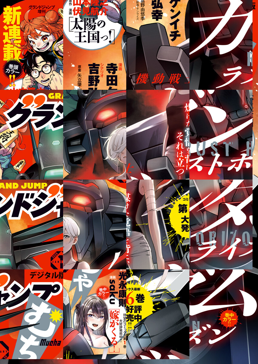 「GJ」増刊「グランドジャンプ むちゃ」電子版、2026年1月号、紙と同時に配信!/【表紙&巻中カラー】『機動戦士ガンダム ラストホライズン』(シナリオ:吉野弘幸 漫画:寺田ケンイチ 原案:矢立肇・富野由悠季 (C)創通・サンライズ)/【巻頭カラー&新連載】『太陽の王国っ!』(原作・山本隆之 漫画・伏見航介)/【巻中カラー】『嫁がくる!』(原作・光永康則 漫画・saku)/ほか、8作品を収録!