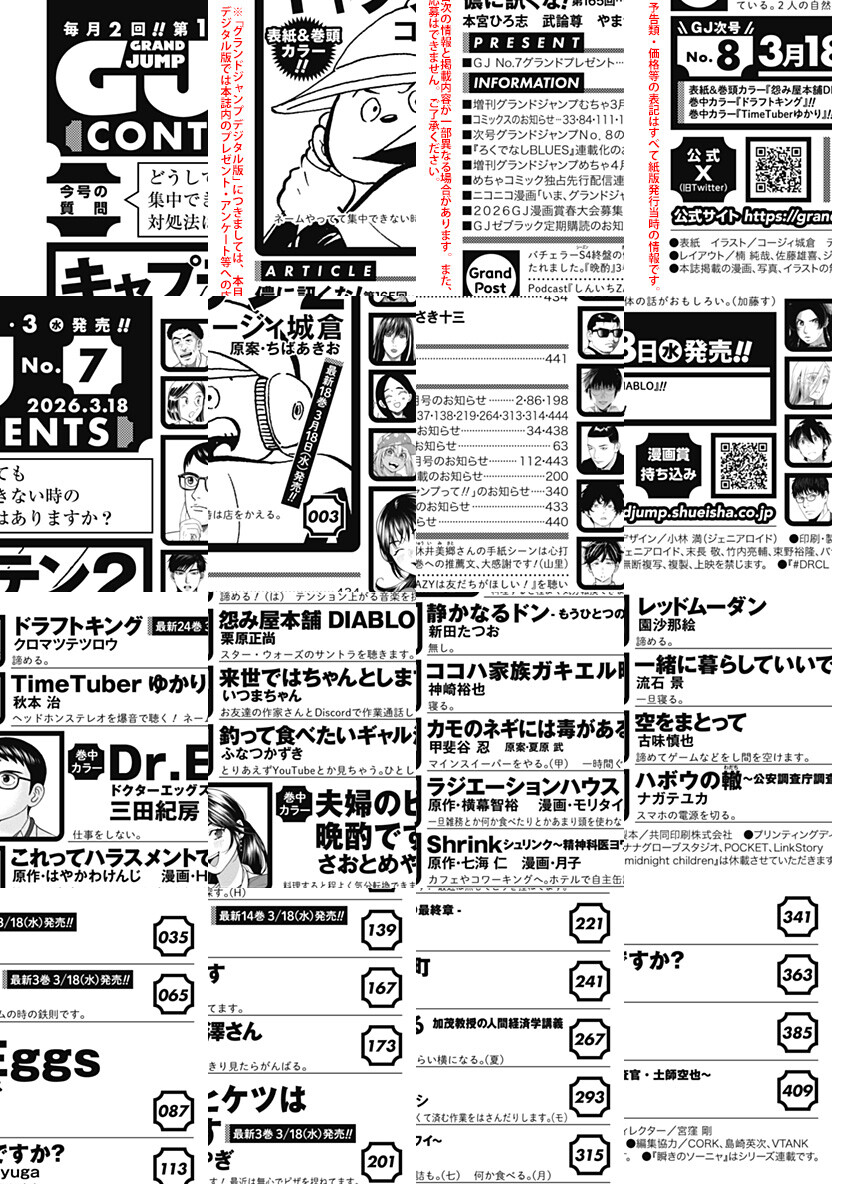 「グランドジャンプ 2026 No.7」、紙と同時に配信!/【表紙&巻頭カラー】『キャプテン2』(コージィ城倉 原案・ちばあきお)/【巻中カラー】『Dr.Eggs ドクターエッグス』(三田紀房)、『夫婦のヒケツは晩酌です』(さおとめやぎ)/【電子版特典&出張連載開始】『花見小路北日記』(桃缶)/ほか、15作品を掲載!