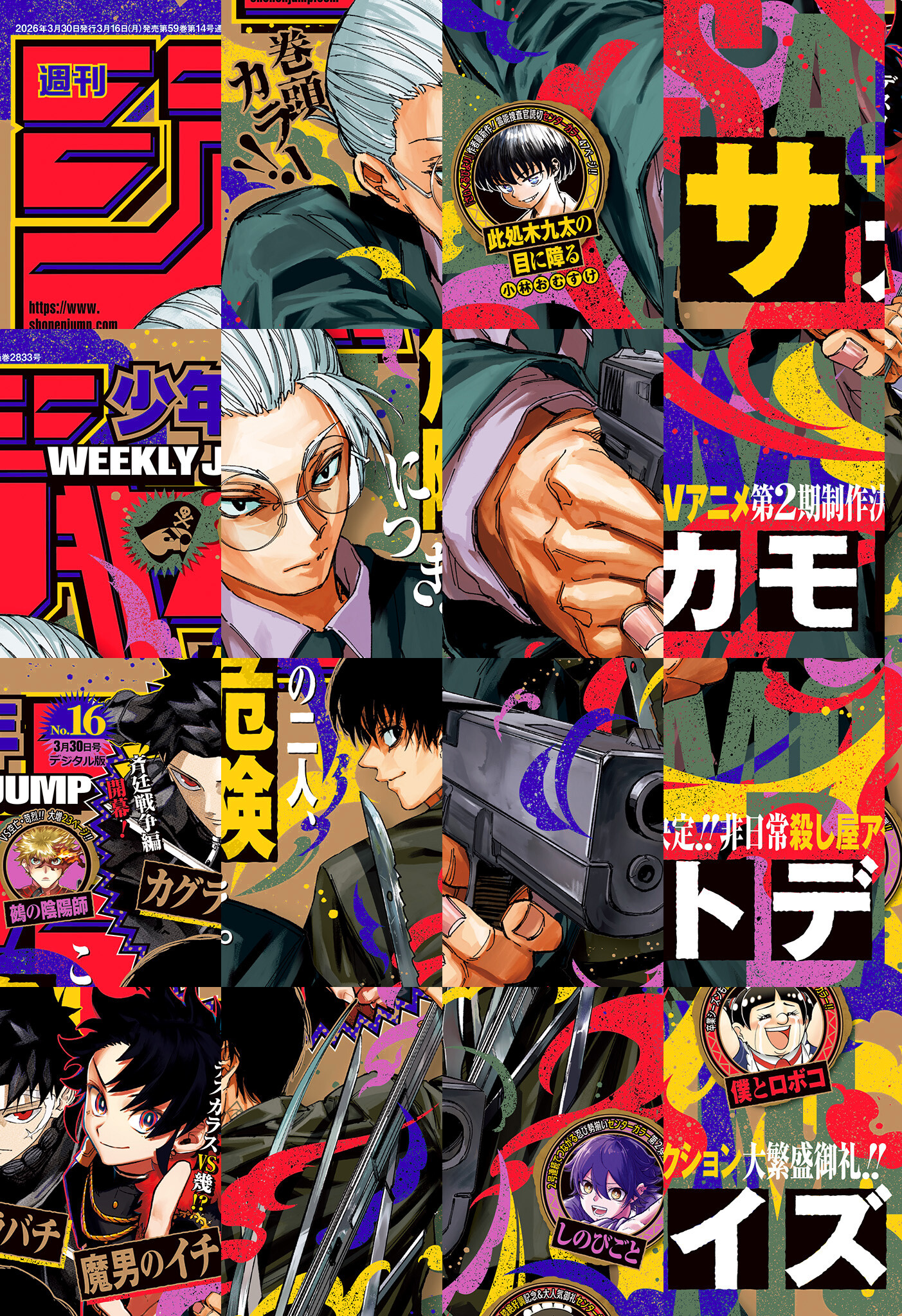 ※「ONE PIECE」は休載となります。【記事ページ】も毎号収録!/TVアニメ第2期制作決定!! 非日常殺し屋アクション大繁盛御礼巻頭カラー!!『SAKAMOTO DAYS』/2号連続でつながる忍び勢揃いセンターカラー第2弾!!『しのびごと』/『さいくるびより』の小林おむすけが贈る!! オカルト事件を追う霊能捜査官読切センターカラー47ページ!!『此処木九太の目に障る』/皆の進路に幸あれ!! 卒業シーズンも膝絶好調記念&大人気御礼センターカラー!!『僕とロボコ』/VS空亡・苛烈!! 大増23ページ!!『鵺の陰陽師』/※デジタル版では、綴じ込み付録・シリアルコードなど一部未収録となっている内容があります。※収録されている懸賞などは紙版の企画であり、デジタル版では一部ご応募頂けないものがございます。