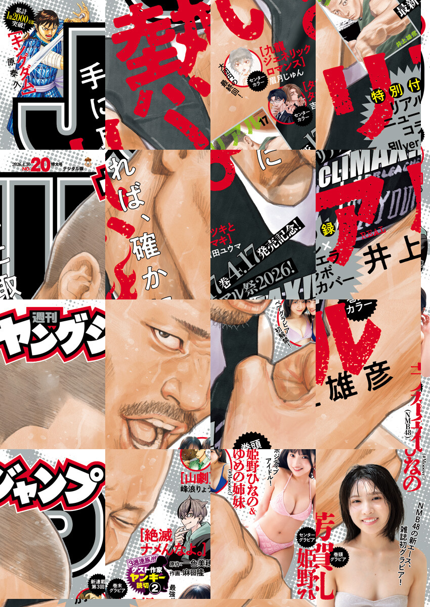 【本号のデジタル版には特別付録「『リアル』第17巻カバーSPECIAL ver.」は収録されておりません。あらかじめご了承ください。】※デジタル版ヤングジャンプは、紙版の同号より未掲載のコンテンツがございます。試し読みファイルのデジタル版目次や注意書きをご確認の上ご購入ください。/「ヤングジャンプ 2026 No.20」、紙と同時に配信!/【表紙&巻頭カラー】『リアル』(井上雄彦)/【巻頭グラビア】芳賀礼(NMB48)/【YJブルーム】中川陽葵/【センターカラー】『九龍ジェネリックロマンス』(眉月じゅん)、『タツキとタマキ』(吉田ユウマ)/【三週連族!!! ゲスト作家ヤンキー読切(2)】『絶滅ナメんなよ。』(原作:一色美穂 作画:麻日隆)/【センターグラビア】姫野ひなの(#Mooove!)/【巻末グラビア】姫野ひなの&ゆめの姉妹(#Mooove!)/ほか、19作品を掲載!