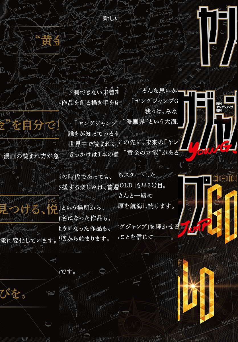 【超ボリュームのYJ増刊!】“黄金”を見つける悦びがここにある!! 週刊ヤングジャンプ増刊「ヤングジャンプGOLD」vol.3!/表紙は、TVアニメ絶賛放送中の『ゴールデンカムイ』(野田サトル)!/TVアニメ『ゴールデンカムイ』&『東京喰種トーキョーグール:re』のWピンナップを収録! さらに『覇穹 封神演義』も加え、アニメ3作品の総力特集も掲載!/巻頭グラビアには今、最もチケットが取れない超人気の「ミュージカル『刀剣乱舞』〜阿津賀志山異聞2018 巴里〜」が完全撮り下ろしでコミック誌に初登場! デジタル版限定の未公開カットも収録! “刀剣男士”の姿に刮目せよ!!/巻頭カラーは『フルドラム』作者が描く最新読切! 『アネクメネ』(箱石達)/大人気『かぐや様は告らせたい〜天才たちの恋愛頭脳戦〜』が特別読切に!! 『かぐや様は告らせたい出張版4コマ かぐこく!』(赤坂アカ)/実力派作家たちがYJGに集結! 『シュレーディンガーの彼女』(原作:bose 作画:武者サブ)&『三瀬さんは見せたがり』(野澤ゆき子)&『けもの道を駆けてゆけ』(吉田丸悠)/さらに、YJ作家たちが描く新作読切やシンマン賞佳作受賞作など、注目の作品が続々! 6人の新人作家による読切競作、第3回「ゴールデンエッグ グランプリ」も開催!/デジタル版限定! YJ本誌で連載中の『封神演義 外伝』(藤崎竜)第1話と、『封神演義』(藤崎竜)本編第1〜3話を収録! 伝説をおさらいしよう!/第2回「ゴールデンエッグ グランプリ」で1位を獲得! 『魔法商女プロダクション』(サイトウリョウ)がデジタル版限定で再登場!/vol.3もデジタル版は900ページ超えの大ボリューム! さぁ、お気に入りを見つけよう!