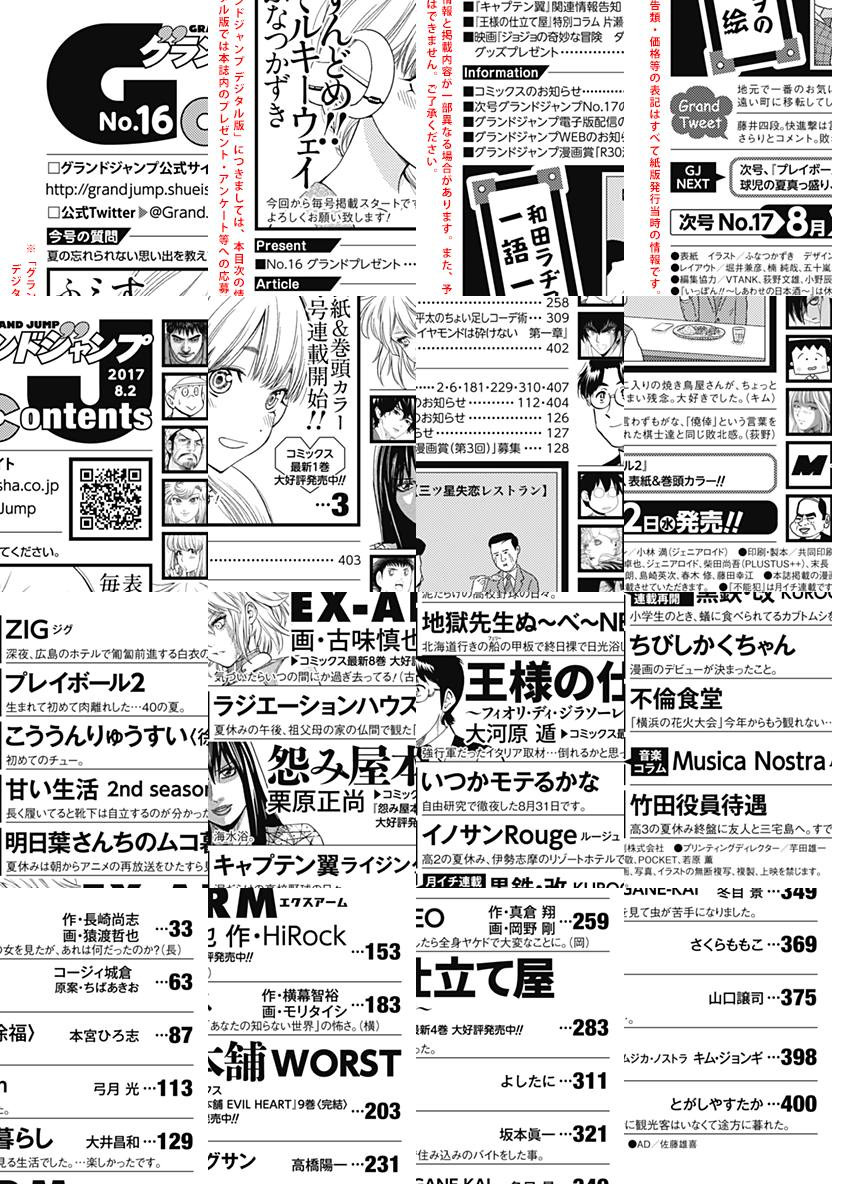表紙&巻頭カラーで待望の毎号連載がスタート! “S”系社会人・義武と“M”系宇宙人・ルネの異星間不純異性交遊、のっけからいろいろ全開! 『すんどめ!!ミルキーウェイ』(ふなつかずき)6話/月イチ連載! 怪しげな集団に付け狙われる迅鉄と鋼丸。一方、丹は学者を名乗る奇妙な男・狩野と出会い…? 『黒鉄・改 KUROGANE-KAI』(冬目景)6話/イジメを苦に自殺したはずの少年に秘められた謎——。複雑な戸籍が映し出す“人間の命の値段”とは!? 『怨み屋本舗 WORST』(栗原正尚)4話/超常兵器・犯罪バトル! 劣勢の仁國社で激突するEX-ARM保持者たちの戦いがさらに白熱! 『EX-ARM エクスアーム』(画・古味慎也 作・HiRock)59話/紳士の装い丸わかり! 画壇の重鎮の心も動かす、ファッションの妙をご覧あれ! 『王様の仕立て屋〜フィオリ・ディ・ジラソーレ〜』(大河原遁)第32話/その他、『ZIG ジグ』(作・長崎尚志 画・猿渡哲也)6話、『プレイボール2』(コージィ城倉 原案・ちばあきお)第7話など、今号も充実の人気連載陣でお届け!