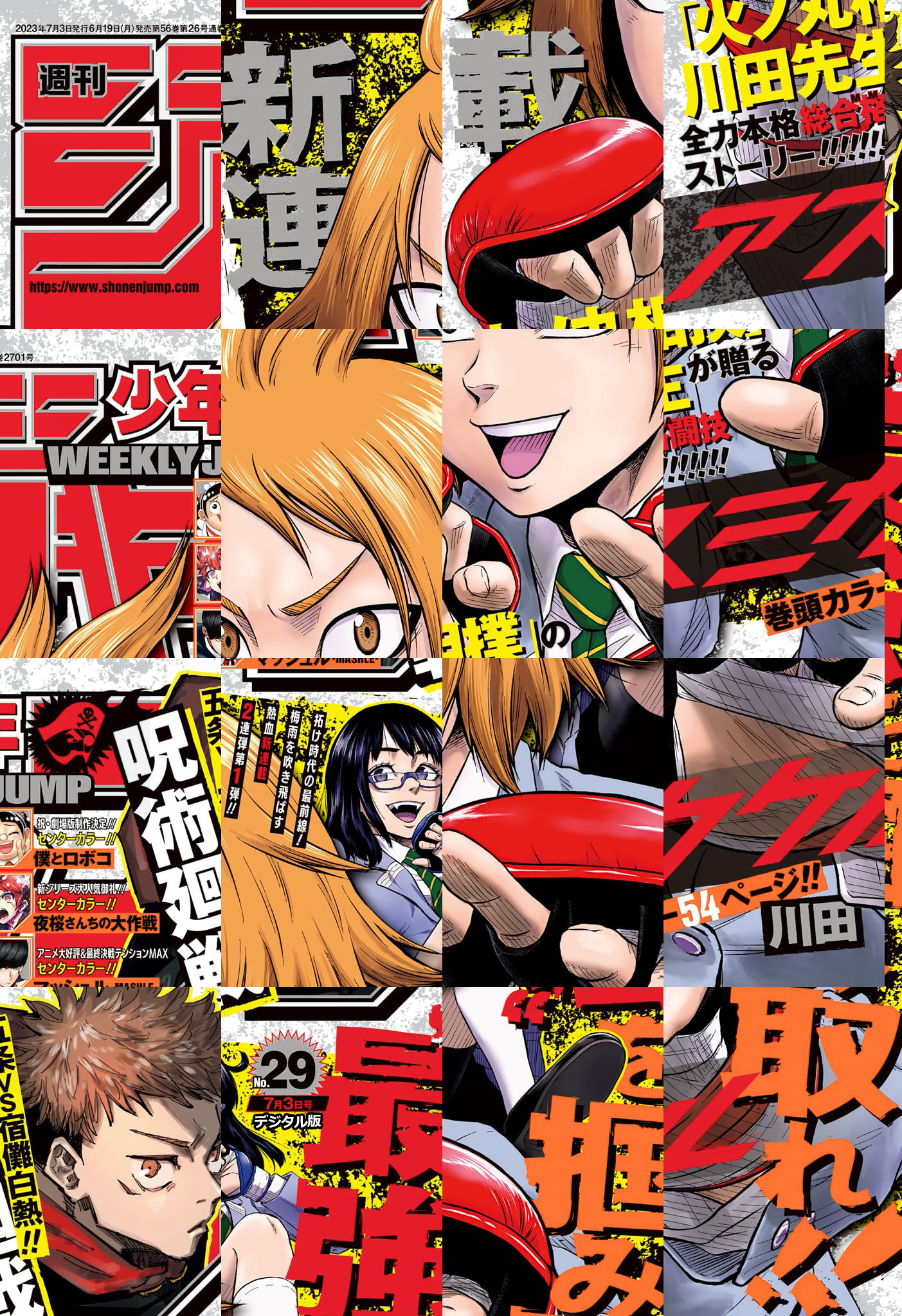 ※「ルリドラゴン」「ONE PIECE」は休載となります。【記事ページ】も毎号収録!/巻頭カラーは、拓け時代の最前線!梅雨を吹き飛ばす熱血新連載2連弾第1弾!!「火ノ丸相撲」の川田先生が贈る全力本格総合格闘技ストーリー新連載54ページ!!『アスミカケル』/アニメ大好評&最終決戦テンションMAXセンターカラー!『マッシュル-MASHLE-』/新シリーズ大人気御礼!!&四怨と嫌五帰還記念センターカラー!!『夜桜さんちの大作戦』/祝・劇場版製作決定&アニメ完走クソ感謝御礼センターカラー!!『僕とロボコ』/※デジタル版では、綴じ込み付録・シリアルコードなど一部未収録となっている内容があります。※収録されている懸賞などは紙版の企画であり、デジタル版では一部ご応募頂けないものがございます。