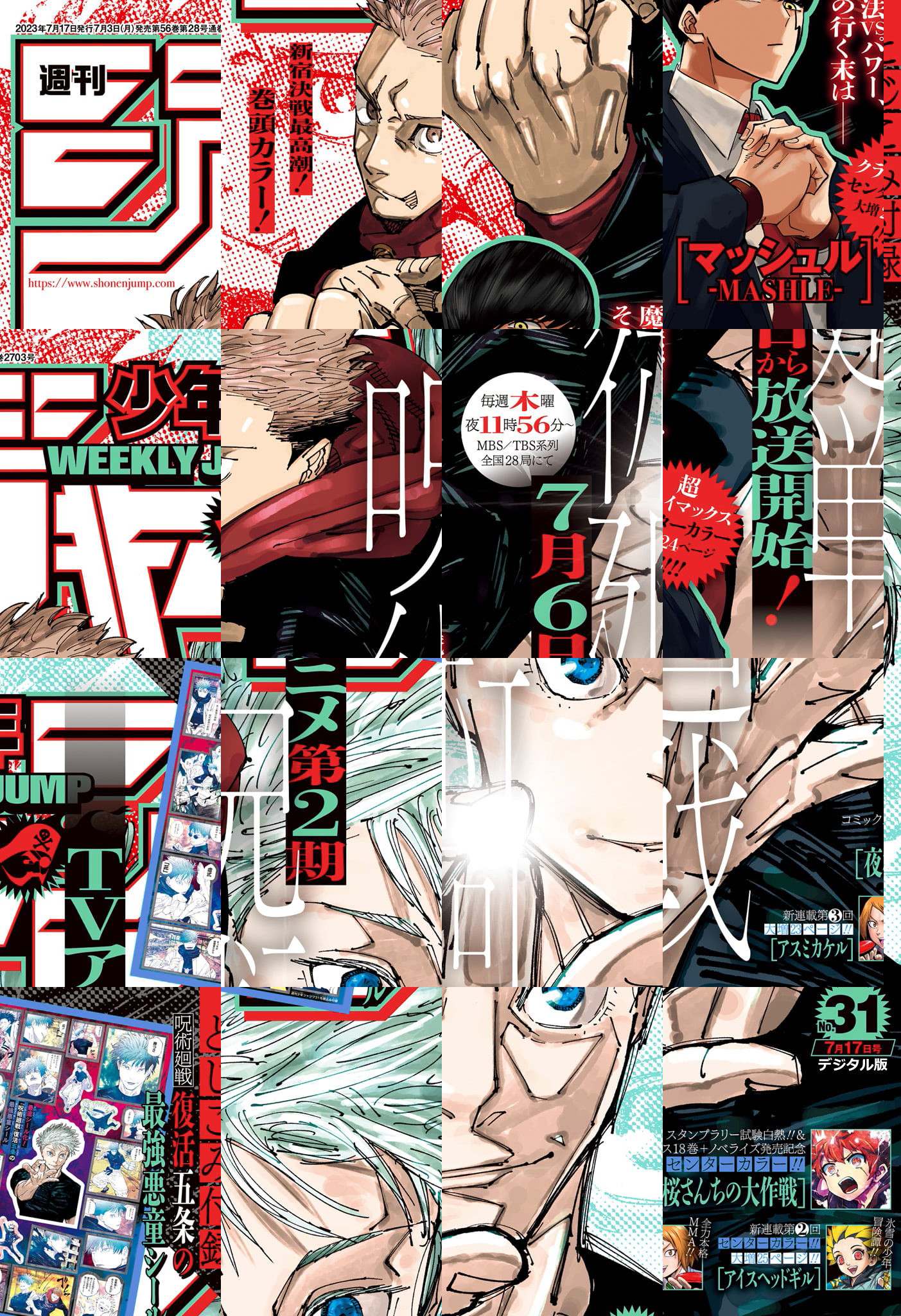 ※「ブラッククローバー」「僕のヒーローアカデミア」「ルリドラゴン」「ONE PIECE」は休載となります。【記事ページ】も毎号収録!/新宿決戦最高潮&テレビアニメ放送直前!巻頭カラー!『呪術廻戦』/氷雪の少年冒険譚新連載第2回センターカラー大増25ページ!!『アイスヘッドギル』/魔法VSパワー、その行く末は──超クライマックスセンターカラー大増24ページ!!『マッシュル-MASHLE-』/スタンプラリー試験白熱!!&コミックス18巻+ノベライズ発売記念センターカラー!!『夜桜さんちの大作戦』/※デジタル版では、綴じ込み付録・シリアルコードなど一部未収録となっている内容があります。※収録されている懸賞などは紙版の企画であり、デジタル版では一部ご応募頂けないものがございます。