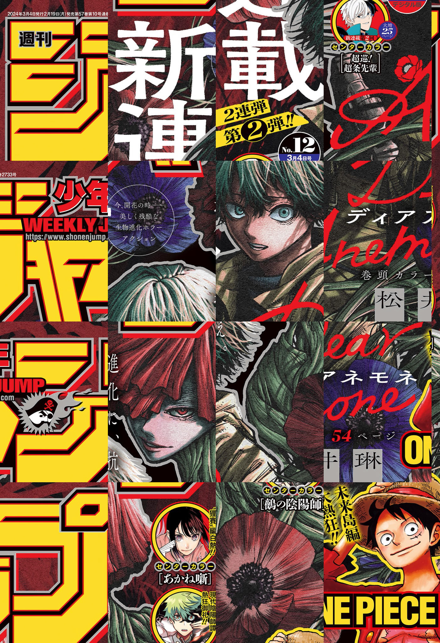 ※「ルリドラゴン」は休載となります。【記事ページ】も毎号収録!/次代の花形参上!!超弩級の衝撃駆け巡る巨弾新連載2連弾第2弾!!今、開花の時―美しく残酷な生物進化ホラーアクション巻頭カラー54ページ!!『Dear Anemone』/「左門くんはサモナー」の沼駿が描く超能力ポリスコメディ!!新連載第2回センターカラー大増25ページ!!『超巡!超条先輩』/"狸賽"編白熱センターカラー!!『あかね噺』/VSレベル3熱戦!現代陰陽師譚熱狂御礼センターカラー!!『鵺の陰陽師』/※デジタル版では、綴じ込み付録・シリアルコードなど一部未収録となっている内容があります。※収録されている懸賞などは紙版の企画であり、デジタル版では一部ご応募頂けないものがございます。
