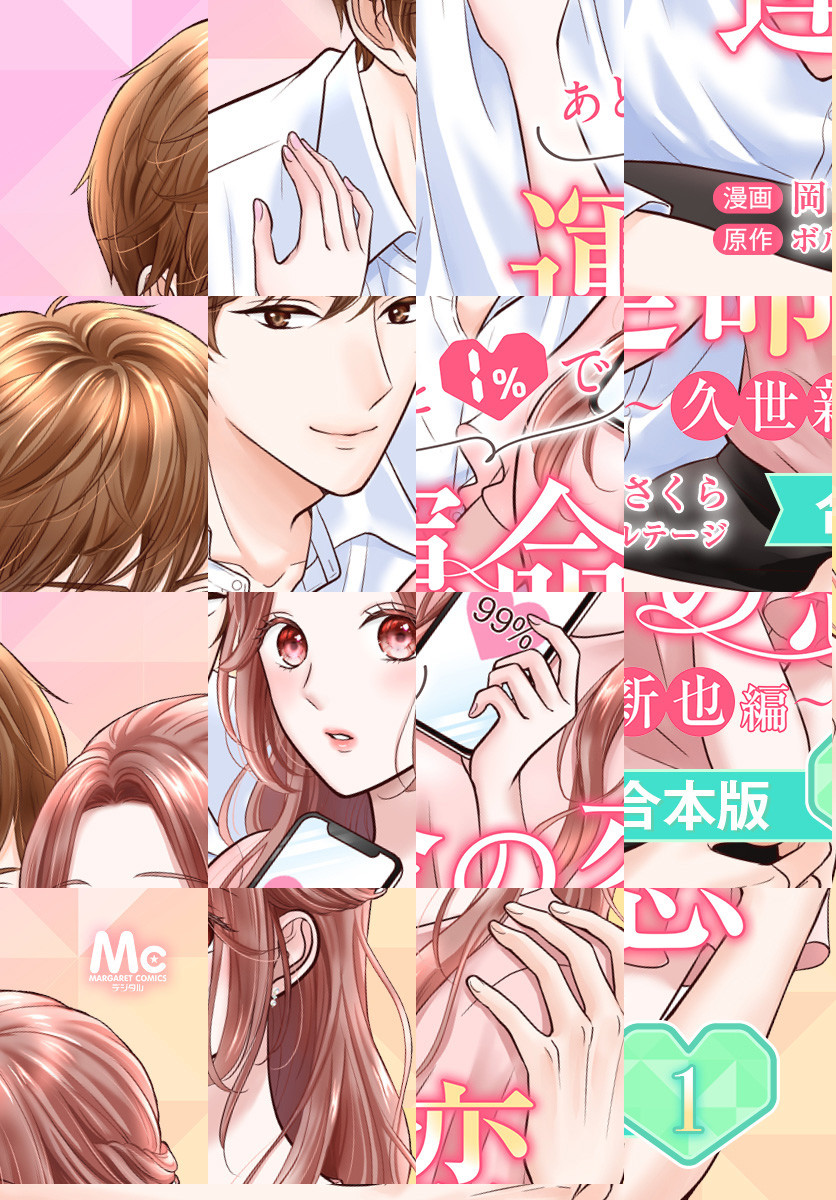 【胸キュンアプリの人気作をコミカライズ! アプリで始まる運命の恋】化粧品会社に勤める佳保里は、国が開発した超高性能マッチングアプリに登録したところ、相性99%の男性とマッチングする。会社の後輩から背中を押され、佳保里はマッチング相手と会うことに。待ち合わせ場所にやってきたのは、高校時代仲の良かった後輩・新也だった。そこで彼が相性99%の相手だと知り――!? オトナ女子のための胸キュン充電アプリ「100シーンの恋+」の人気作、待望のコミカライズ! ※「あと1%で運命の恋~久世新也編~」1~5巻をまとめて収録したものです。重複購入にご注意ください。