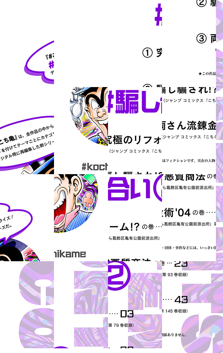 デジタル版だけで配信する新シリーズ! その名も『#こち亀』!! 40年に渡って週刊少年ジャンプで連載を続けた1900を超える全作品の中から、#を付けてテーマごとにカテゴライズ! 「#ギャンブル」にまつわる笑撃エピソードを3編収録しているぞ!