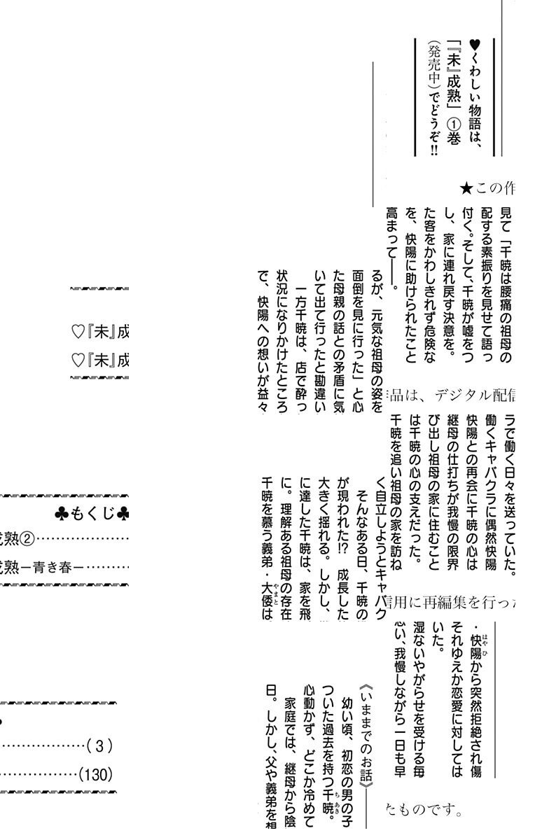※2025年11月29日までの期間限定無料お試し版です。2025年11月30日以降はご利用できなくなります。【息をのむ美しさ! 繊細な絵に見惚れるマンガ特集】子供の頃、初恋の男の子・快くんに突然の拒絶をされた千暁。「私は、何をしでかしてしまったのだろう…?」。当てのない問いと胸の痛みを繰り返し、彼女は大人になった。どんなに他の男と寝ても、恋愛に心が動くことはない。嫌味な継母の家から出て行くため、キャバ嬢として働く日々の中で、千暁は成長した快くんと再会し…!?