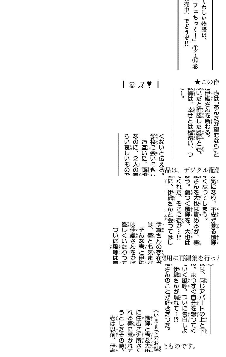 風呼は明るく元気な女の子。ある日、アパートの上の部屋に引越してきたクールな壱と、悪ガキ大也。第一印象サイアク! しかも同じ学校だなんて風呼の高校生活どうなっちゃうの!?