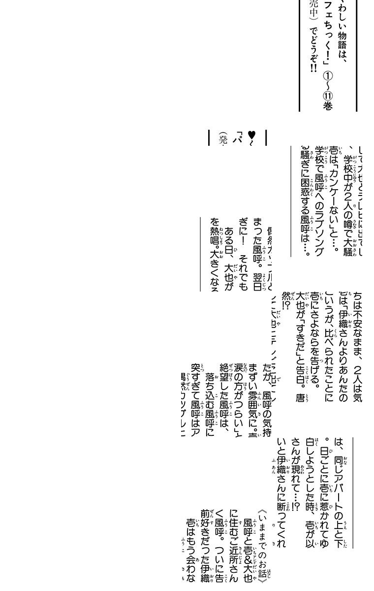 風呼は明るく元気な女の子。ある日、アパートの上の部屋に引越してきたクールな壱と、悪ガキ大也。第一印象サイアク! しかも同じ学校だなんて風呼の高校生活どうなっちゃうの!?