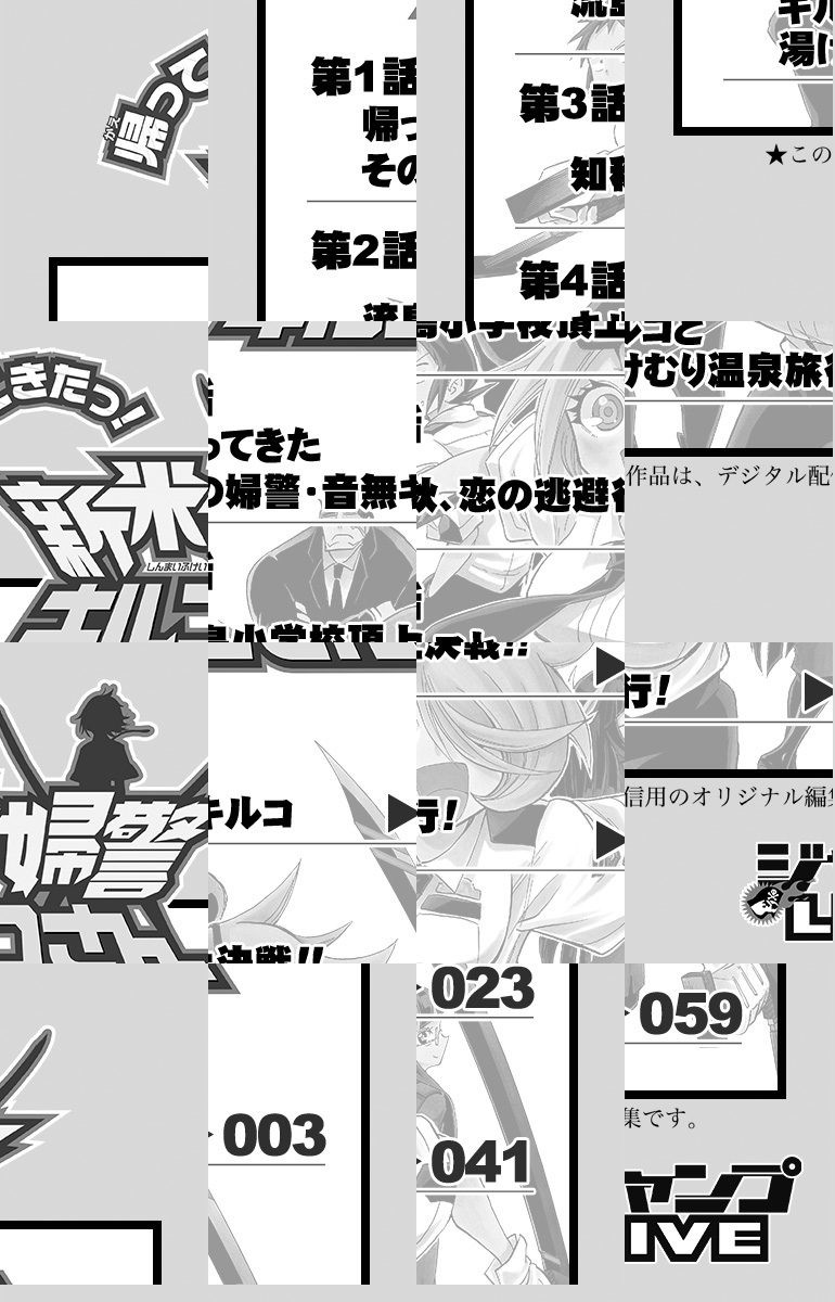 『週刊少年ジャンプ』で大人気! 「新米婦警キルコさん」が帰ってきたっ! 元傭兵で鬼強い!だけどドジでヘッポコ! ミニパトを貰ったり、幼女に頭を下げたり、先輩を尾行したり温泉に行ったり、キルコは今日も元気です!