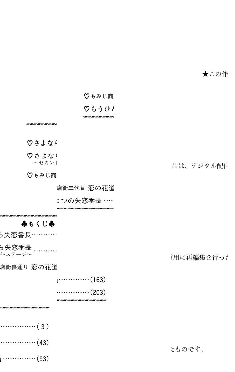 渋谷広海(♂)の母親は、同じ団地の大塚順子(♀)の父親とかけおちを!? いがみ合う2人だったけど、次第に「出て行ったアイツらよりも幸せになる!!」をモットーに、恋愛にアグレッシブな日々を送るように。失恋続きの2人だったが、とうとう大塚に彼氏が!? 表題作他3編。 【収録作品】さよなら失恋番長/さよなら失恋番長〜セカンド・ステージ〜/もみじ商店街裏通り 恋の花道/もみじ商店街三代目 恋の花道