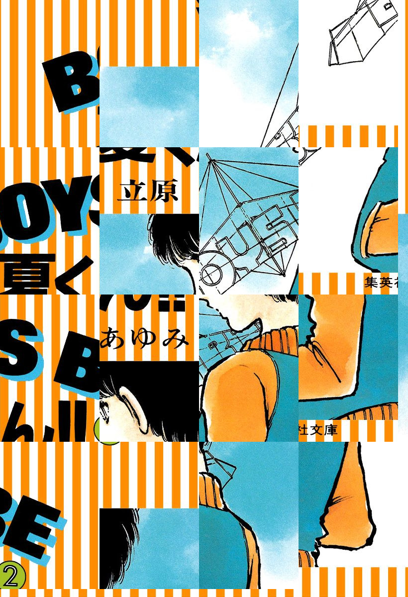 和泉澤夏、高一。ちょっとした事件で前の学校を退学になった夏くん、海辺の学校にひろってもらっての寮生活。寮母さんがいなけりゃ最高なんだけど……。SEXコンプレックスを解消しようと、先輩のハングラをもちだして校舎の屋根からとび出した。気分爽快そして墜落。左手骨折、右足首挫傷、全治一カ月。これもBOYS BEゆえの挑戦ってわけ!? 夏休みにバイトして弁償しなくちゃ。