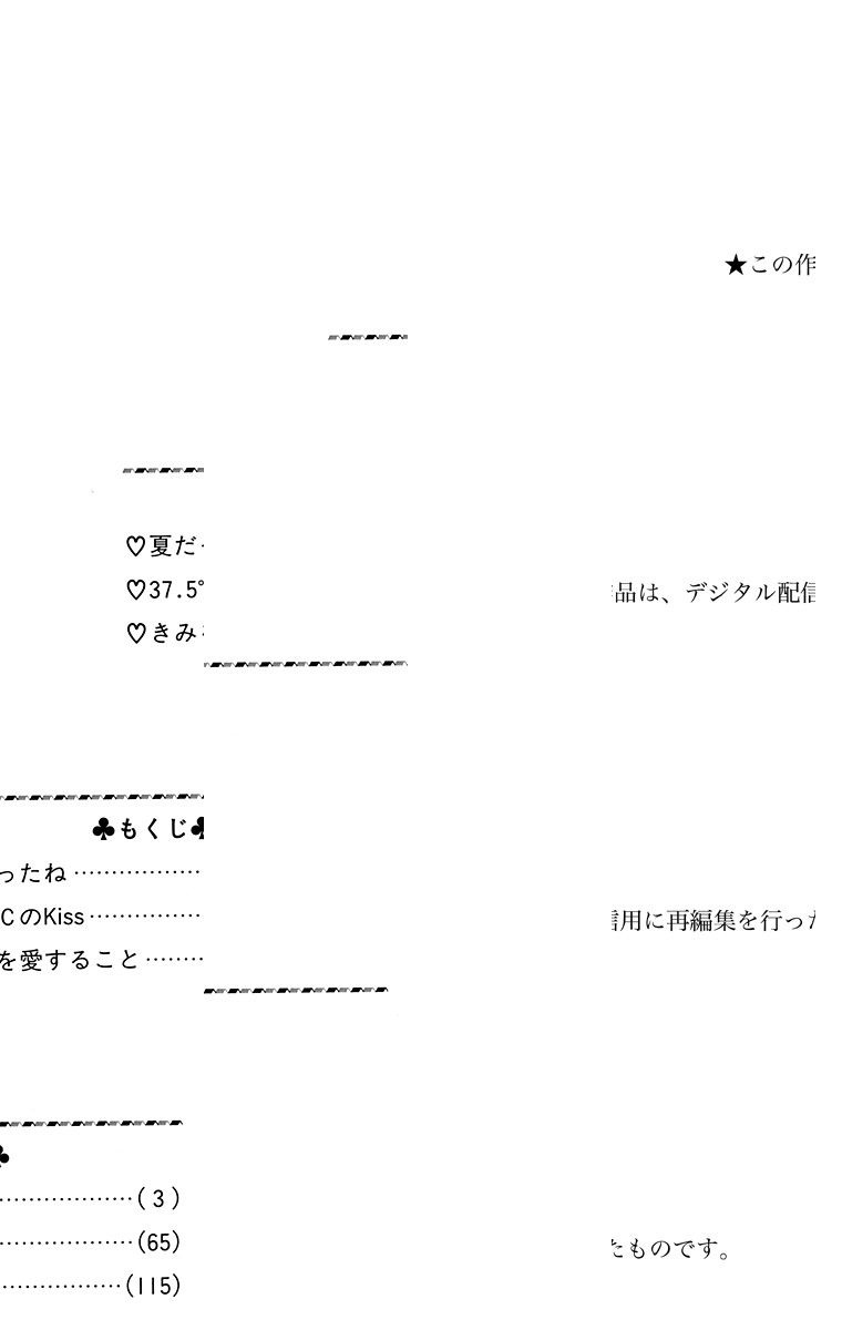 【胸キュンのさわやかラブ・ストーリー】中3のまーこは、同級生の瑞秀と大の仲良し。でも、まーこは友達でなく女の子として見てほしいと願っていた。そんな矢先、瑞秀から遠回しな告白が!! 嬉しいはずが、なぜか二人はぎくしゃく…。さらにまーこは瑞秀のいとこ、大学生の朗から突然キスされて…!! 【同時収録】37.5℃のkiss/きみを愛すること