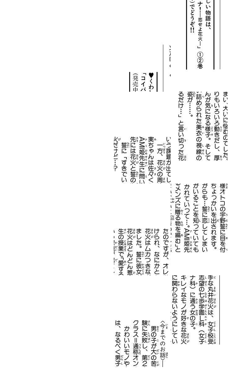 男の子が大の苦手な丸井花火。受験に失敗して入った高校は、なんと男7対女1のほぼ男子校!! 女の子だけに囲まれて、平和に過ごしたかったのに、オレ様オトコの宇野誓に目をつけられて…花火の受難の日々が今始まる!!