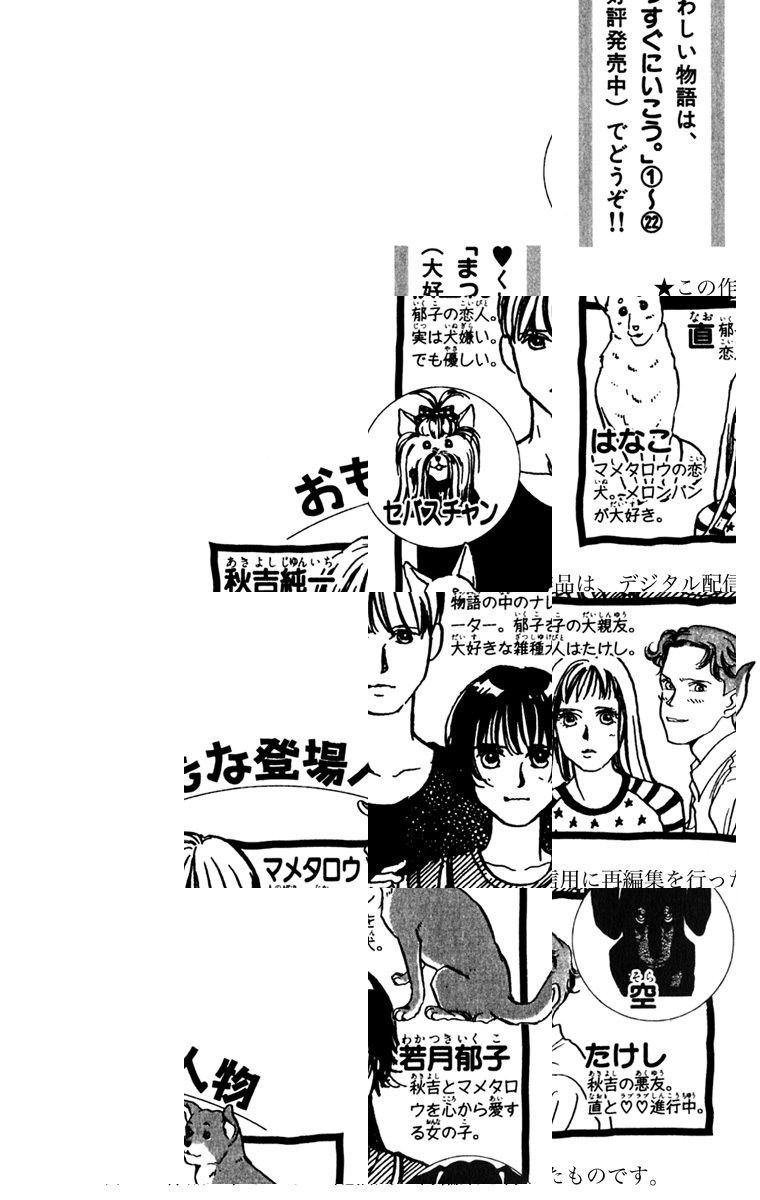 【高校生の男女+愛犬のトライアングル恋模様】オレの名前はマメタロウ。おとこの犬だ。主人の郁ちゃん―若月郁子は、オレのことを何でもわかってくれる。だからオレも郁ちゃんのことは何でもわかる……たとえば好きな人とか。雑種犬・マメタロウとその飼い主・若月郁子、そして郁子の彼氏・秋吉純一のほんわかラブストーリー・第1巻。