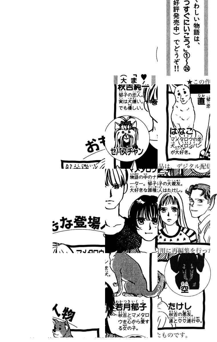 【高校生の男女+愛犬のトライアングル恋模様】オレの名前はマメタロウ。おとこの犬だ。主人の郁ちゃん―若月郁子は、オレのことを何でもわかってくれる。だからオレも郁ちゃんのことは何でもわかる……たとえば好きな人とか。雑種犬・マメタロウとその飼い主・若月郁子、そして郁子の彼氏・秋吉純一のほんわかラブストーリー・第1巻。