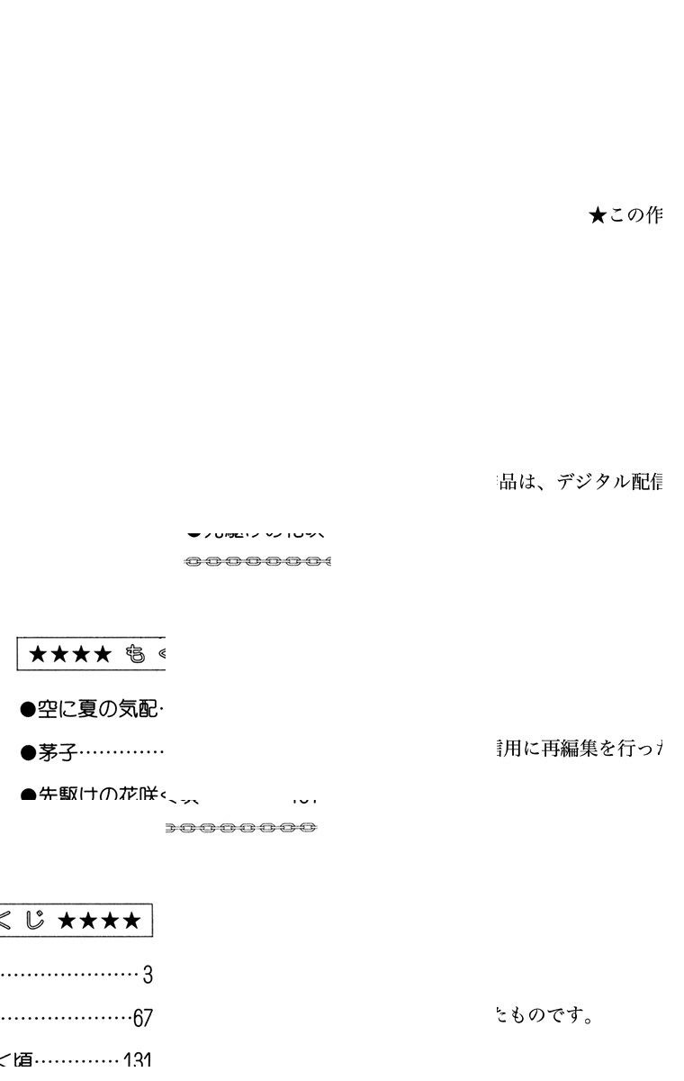 郁美は父の九州転勤に伴い、転校することになった。BFの小松くんが言うには「九州はものすごく遠い」。親友の稲垣(♀)は「遊びに来た九州の親戚の会話は同じ日本語とは思えなかった」と言う。郁美の心に渦巻く不安と期待…。夏の訪れを感じながら、東京で友と過ごす高校生活最後の夏休みが始まる。 【同時収録】茅子(かやこ)/先駆けの花咲く頃