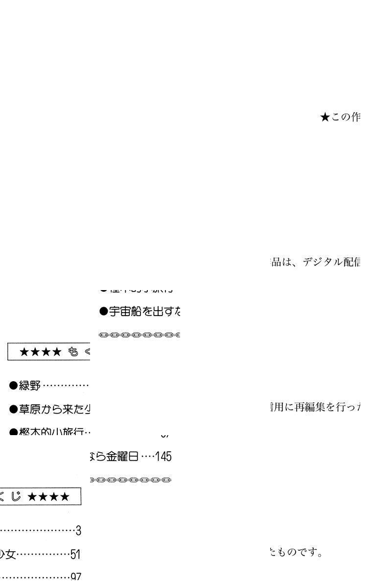 誰も住めない星になってしまった地球…。脱出した人間は、生活できる惑星を求めて移住した。悠久の時が流れて、一人の少女がAIロボットとともに地球への帰還を試みる。だが攻撃衛星の砲弾を浴び、名も知れぬ小惑星に不時着する。搭乗していた少女の名はイエラ。AIは失うが、そこでハリという少年に出会う。 【同時収録】草原から来た少女/樫木的小旅行/宇宙船を出すなら金曜日