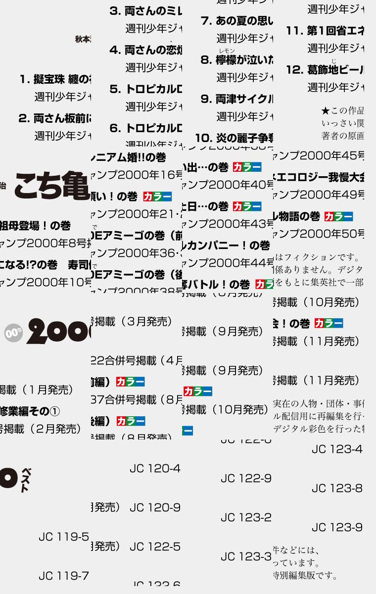 超国民的ギャグ漫画「こちら葛飾区亀有公園前派出所」の少年ジャンプ掲載年別セレクション! こち亀の歴史に新展開!! 暴漢をブチのめして1か月の謹慎になった両さんが、纏の誘いで超神田寿司で住み込みバイトを始める! 「両さん板前になる!?の巻 寿司修業編」ほか、人生転機の12話を収録!!