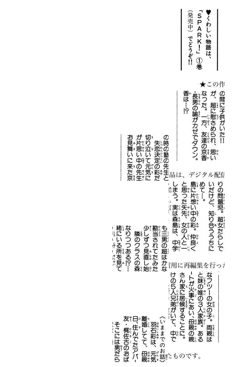 母親と妹の3人で暮らす彩は、元気なフツーの女の子。ある日住んでいるアパートが火事に!! 母親の親友・梶佐古おばさん家に居候することになったけど、そこには5人兄弟がいて…!?