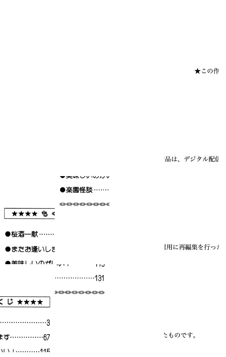 日本酒をこよなく愛する父親と、カクテルバーでバイトする大学生の息子の物語。母親が十二指腸潰瘍で緊急入院した家族。父は息子と幼い娘のため、台所に立つが失敗ばかり。料理の腕は、息子のほうがバイト仕込みで一枚上だ。そんな父だが、ある日バーで働く息子に、奥深い日本酒の五味というものを説く。 【同時収録】またお逢いします/美味しいのがいい!/楽園怪談