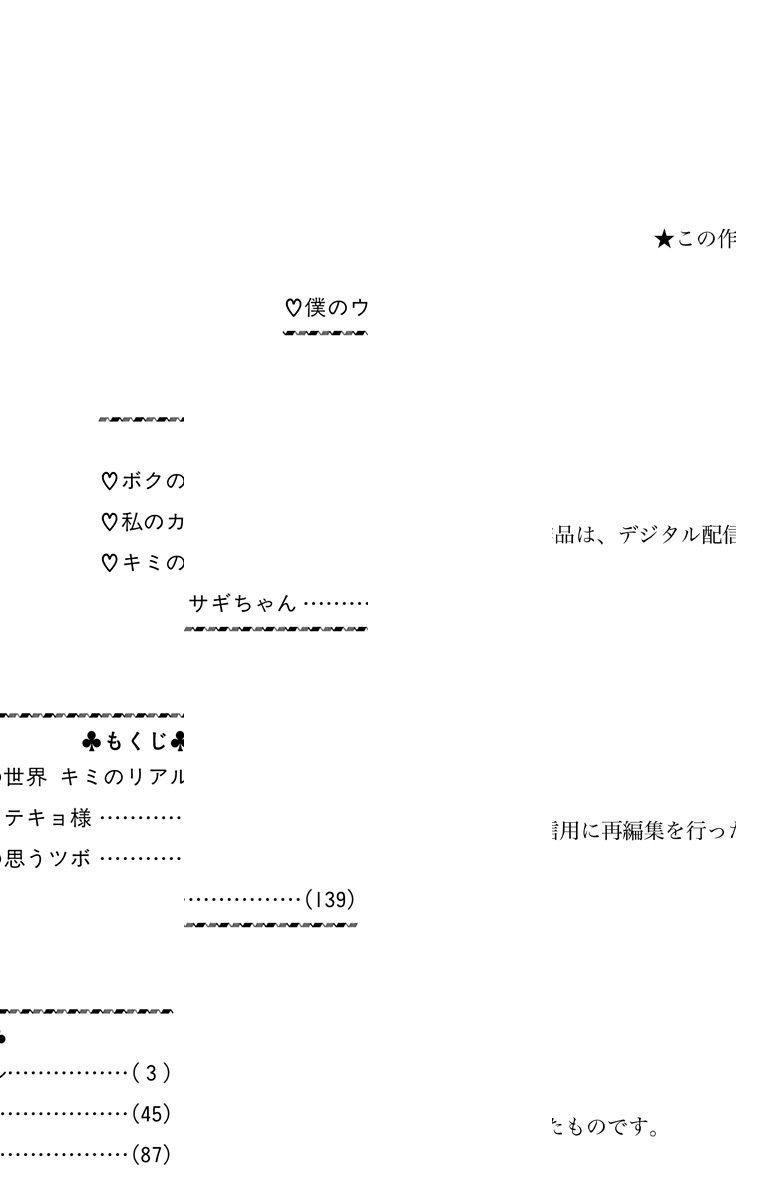 麻由は萩原に一目ぼれ! だって何か色気あるんだもん…。でもそんなことも含めて好きだなんて言えないよー。ついケンカしちゃう2人だけど萩原が妙に接近!? 興奮度高めラブストーリーを4編収録です! 【収録作品】ボクの世界 キミのリアル/私のカテキョ様/キミの思うツボ/僕のウサギちゃん