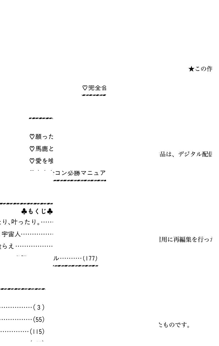 梨江(17)はモテるけれど誰ともつきあう気になれない。2年前の恋が忘れられないのだ…。でも友達が企てた合コンで、偶然“あの人”に再会した梨江は…!? 純愛ラッキー・チャンス。 【同時収録】馬鹿と宇宙人/愛を喰らえ/完全合コン必勝マニュアル