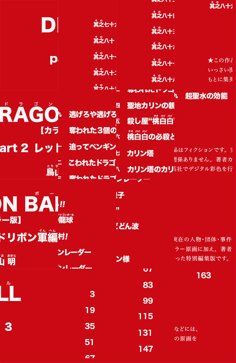 【デジタル着色によるフルカラー版!】天下一武道会も終わり、再び旅に出る悟空。その途中で、同じくドラゴンボールを探す世界最悪の軍団レッドリボン軍と遭遇する。悟空は、各階に刺客を置く敵の要塞マッスルタワーに向かう! (55話「赤いリボン」~66話「マッスルタワーの最期!!」までの12話分を収録)