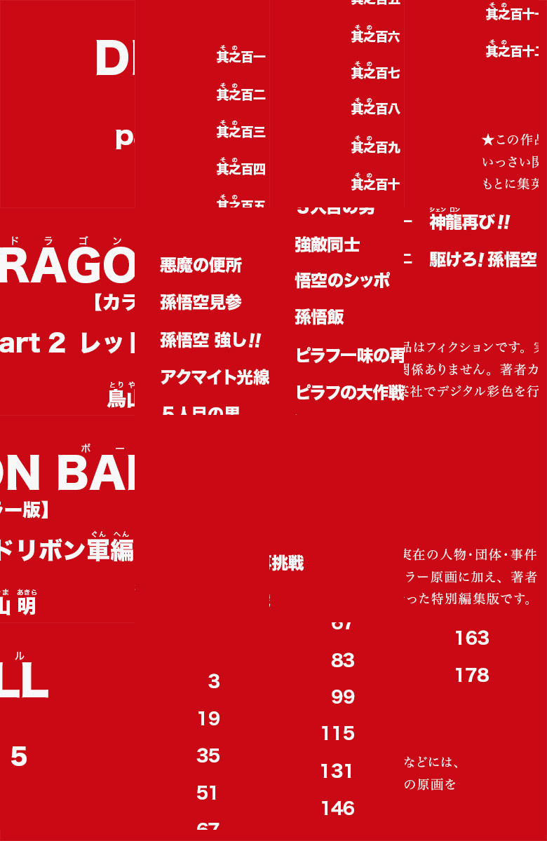 【デジタル着色によるフルカラー版!】天下一武道会も終わり、再び旅に出る悟空。その途中で、同じくドラゴンボールを探す世界最悪の軍団レッドリボン軍と遭遇する。悟空は、各階に刺客を置く敵の要塞マッスルタワーに向かう! (55話「赤いリボン」~66話「マッスルタワーの最期!!」までの12話分を収録)
