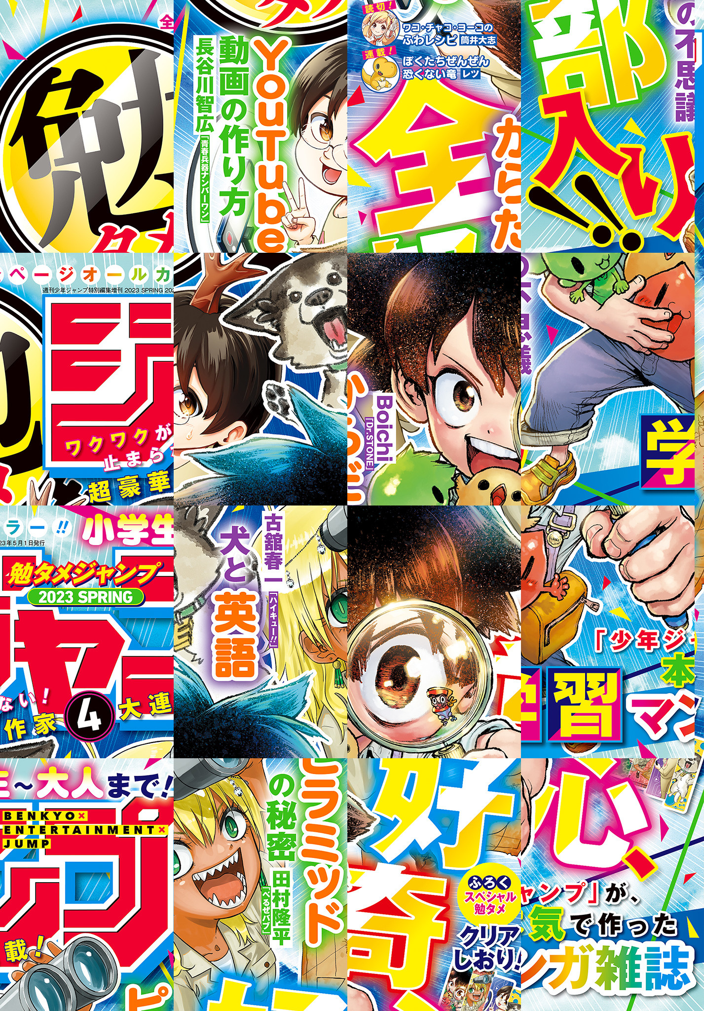 ※「勉タメジャンプ」デジタル版には、紙版の付録は付属しません。ご了承ください。/全ページオールカラー!! 週刊少年ジャンプ特別編集増刊「勉タメジャンプ 2023 SPRING」、紙と同時に配信!/【連載】『人体レスキュー探検隊-VISCERIS VOYAGE-』(Boichi)、『セベクちゃんは噛みつきたい』(田村隆平)、『ぼくたちぜんぜん恐くない竜』(レツ)、『ナゾトキ博士のヒラメキ遺跡探検記』(文章:駆村いと イラスト:川口勇貴)、『絶対作れる!YouTube教室潜入記』(長谷川智広)、『犬えいご!!』(古舘春一)/【読切】『ワコ・チャコ・ヨーコのふわレシピ』(筒井大志)/【付録】スペシャル勉タメクリアしおり!!(デジタル版はイラストとして巻末に収録)/「少年ジャンプ」が本気で作った学習マンガ雑誌! 小学生から大人までタメになる情報盛りだくさん!